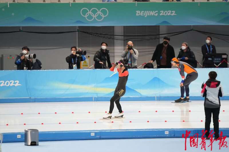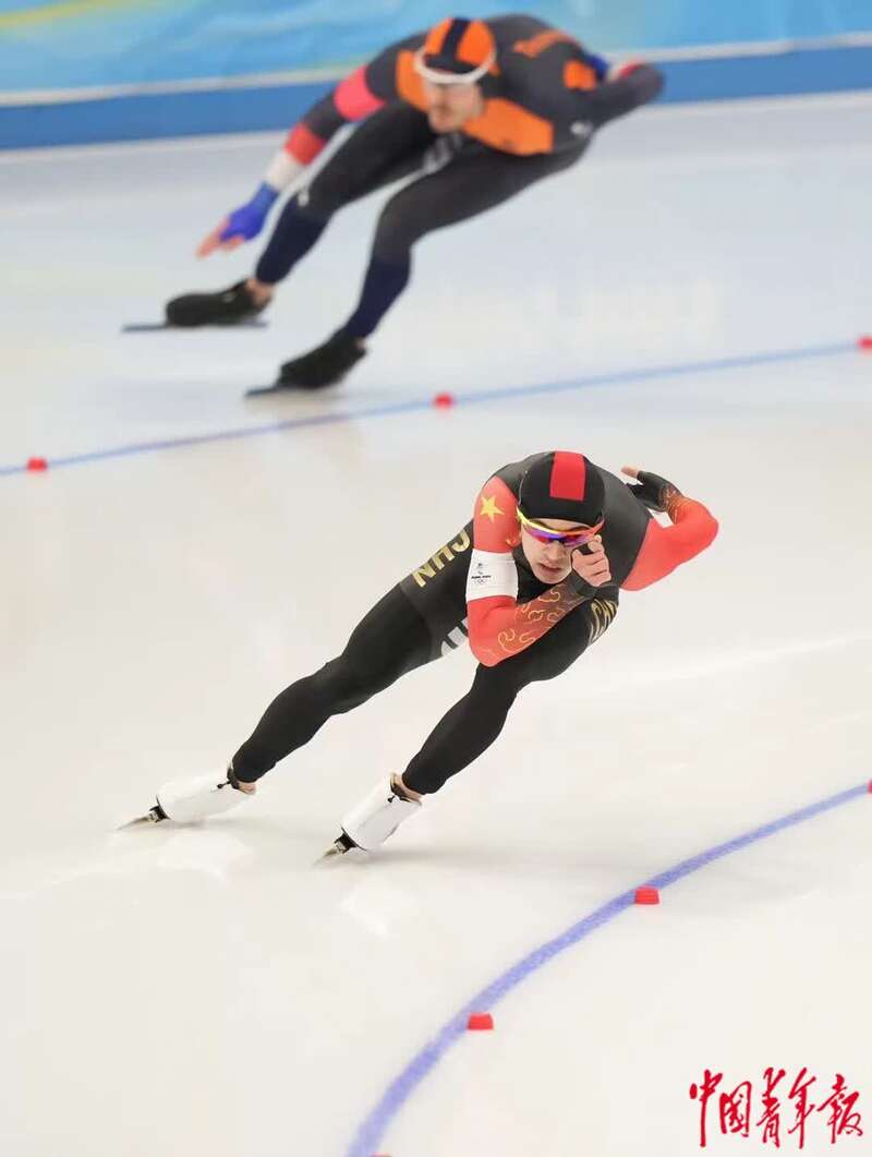 1分08秒60,宁忠岩在男子1000米比赛中获得第五名。“冰丝带”今天进入倒数第二个比赛日,总共15组选手参加速度滑冰男子1000米比赛,宁忠岩在第14组出场——第13组和第14组是今天“碰撞”最激烈的对抗:第13组荷兰选手克罗尔世界排名第一,挪威人洛伦森排名第三,第14组荷兰人奥特斯皮尔世界排名第四,宁忠岩第五。最终宁忠岩1分08秒60获得第五。此前中国队此项目最好成绩为刘洪波在1994年利勒哈默尔冬奥会上获得的第4名。(中青报·中青网记者 郭剑 杨屾/文 李隽辉/摄)