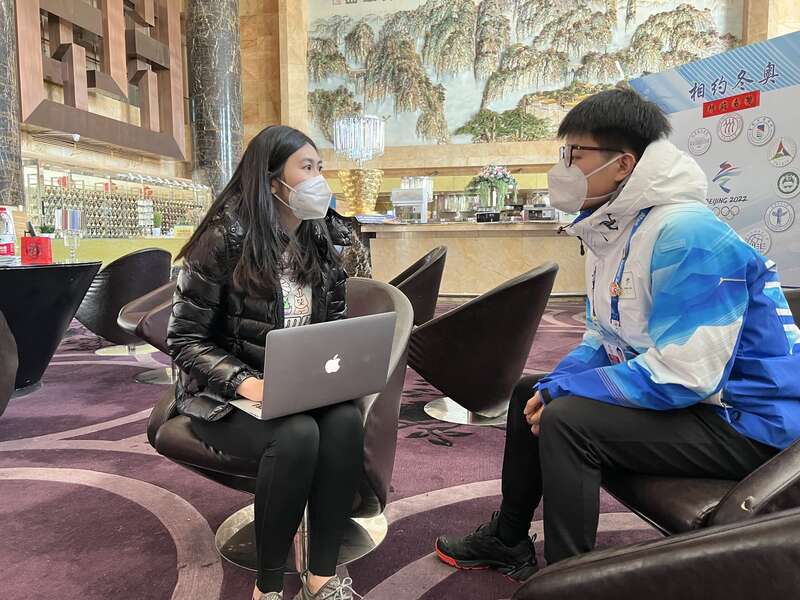 “我们团队,是由90后青年教师托举着00后的年轻人, 他们专业、热情,自信从容地在最快的冰面和最美的冰面上标注志愿服务的青春,在这些00后志愿者背后有很多属于他们的冬奥故事。”