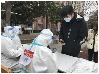 家住苏州吴门桥街道的建筑2013团支部学生俞嘉炜,得知街道收到全国各地捐赠的抗疫物资后,主动加入社区志愿服务队,在工作人员的指导下进行物资配送。随后又加入核酸检测的工作队伍,协助医护人员进行核酸采样。俞嘉炜表示,作为一名共青团员,有责任和义务奋力投身到疫情防控的第一线。