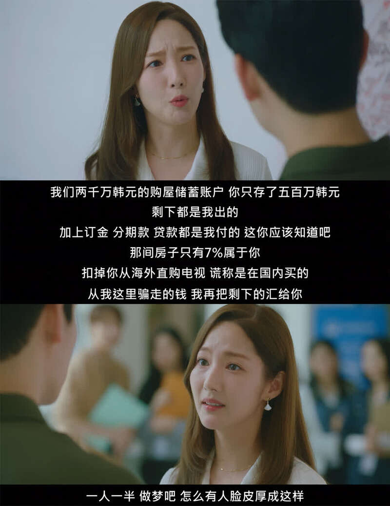 看到韩基俊堂而皇之认为女方理应避嫌离开的样子,真想冲进电视机里,替女主给他一个大嘴巴子。