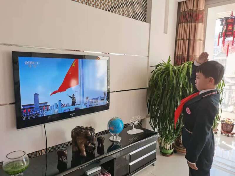 3月1日一大早,内蒙古自治区呼和浩特市苏虎街小学二年级一班学生刘思延穿好校服、戴上红领巾,站在家中电视机前,参加学校开学第一天的升国旗仪式。这是一次“线上”开学典礼,呼和浩特市中小学生在这一天都迎来了“线上”开学。