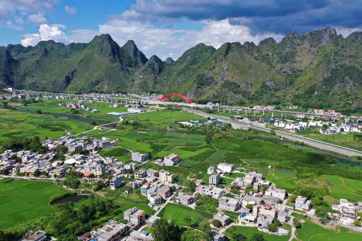 这是广西都安瑶族自治县高岭镇境内的乡村风貌(2021年8月31日摄,无人机照片)。近年来,广西壮族自治区生态文明建设成果喜人,八桂大地一年四季生机盎然,山川处处景象宜人。新华社记者 陆波岸 摄