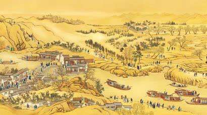 康熙皇帝六次南巡,四次驻跸江宁织造府,都是由时任江宁织造的曹寅负责接驾。南巡之举堪称盛事,但也极为奢靡。《红楼梦》前半部的重头戏“元妃省亲”就被评点家脂砚斋认为是借之写南巡,忆昔感今。图为王翚、杨晋等创作的《康熙南巡图》