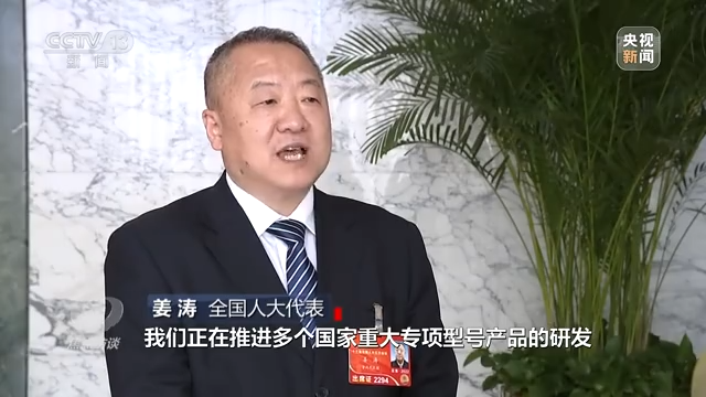 全国人大代表 姜涛:总书记说的加快实现科技自立自强,我感触很深,我们正在推进多个国家重大专项型号产品研发,把研发抓好,技术握在自己手里,我们才能在高质量发展路上行稳致远。