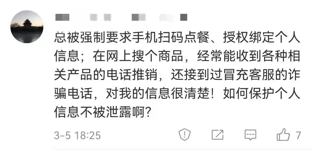 你有没有过这样的经历:刚生完小孩儿,就接到婴幼儿产品和服务项目的推销电话,去饭店就餐,被要求用手机扫码点菜并绑定微信账号,网上购物不久,却接到“伪客服”的各种诈骗电话……