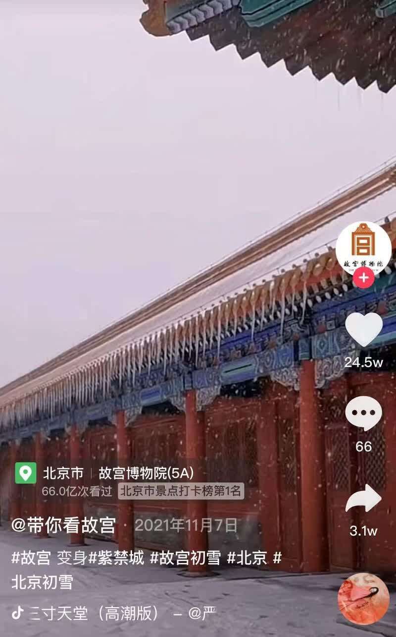 “故宫初雪”+《三寸天堂》,获得24.5万个赞