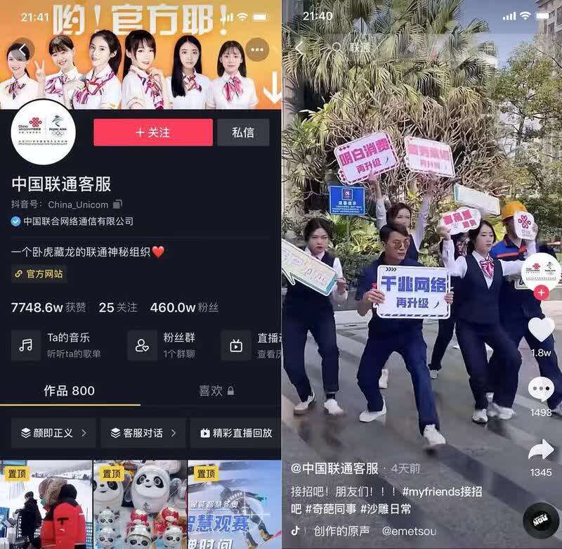 从页面设置、介绍到视频,中国联通客服的账号都把业务“人格化”