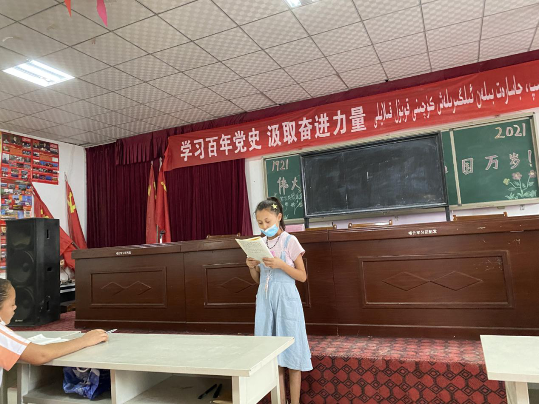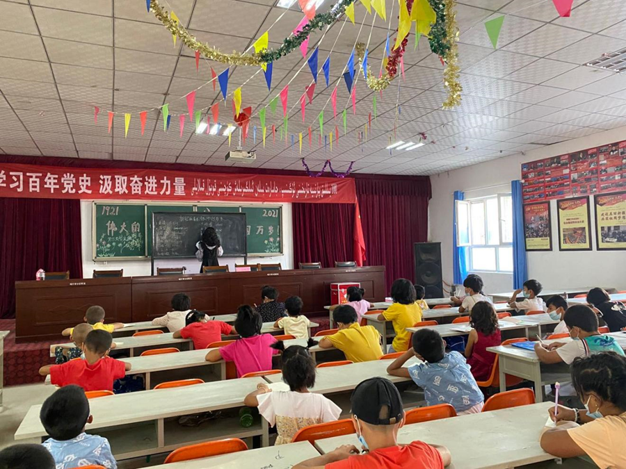 和田分队的志愿者们以“普通话+维吾尔语”双语教学为模式正式开启了和田的推普教学之旅。推普课程的内容重点放在贴近人民生活的惠民政策上,通过双语的讲解,居民更清楚地了解新疆惠民政策以及个体户经营知识等方面内容。从就业、教育和医疗等方面为群众解读党的惠民政策,让群众打从心底里感受到民生建设带来的幸福感。为配合社区落实疫情防控宣传工作,队伍同样为社区居民普及疫情防控科学知识,以此来提高社区居民自我防护意识和能力。根据地区群众的实际知识储备情况,和田分队开展了讲党史学党史的主题活动,向社区干部、群众讲述党史、新中国史等,深切体会革命先烈顽强斗争的崇高精神和坚定的革命信仰。