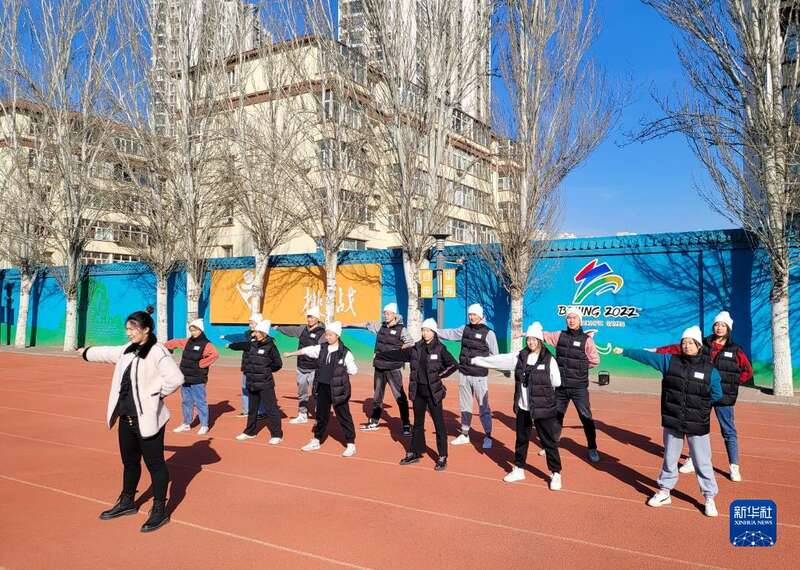 在河北省张家口市特殊教育学校,参与北京2022年冬残奥会表演的学生们在老师张丽颖的带领下练习啦啦操(2月27日摄)。