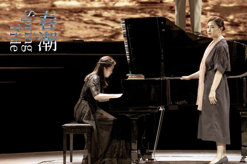 舞台中央是一架三角钢琴,演奏家的指尖敲动琴键,圆形转台缓缓转动,尘封的年轮随之铺陈开来,将人生浓缩其上,将故事娓娓道来。王晓鹰说:“这种特别符合戏剧舞台的讲述方式,传递出了两代人之间的深厚系念,还原出一个原汁原味的时代特写以及完整真实的人物群像,汇成了舞台上流淌的诗。”