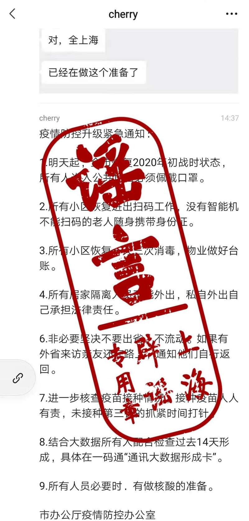 上海市防控指挥部就此明确指出,该《通知》为编造。