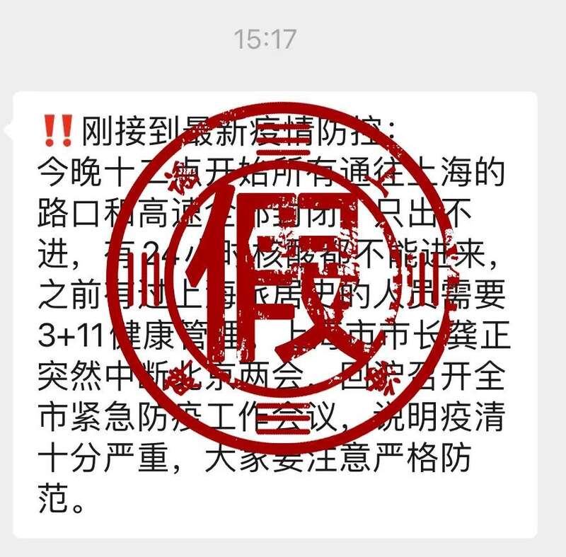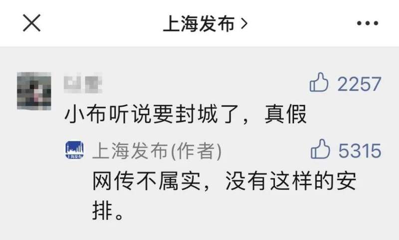 针对近期网络上出现与“上海封城”相关的各种传言。