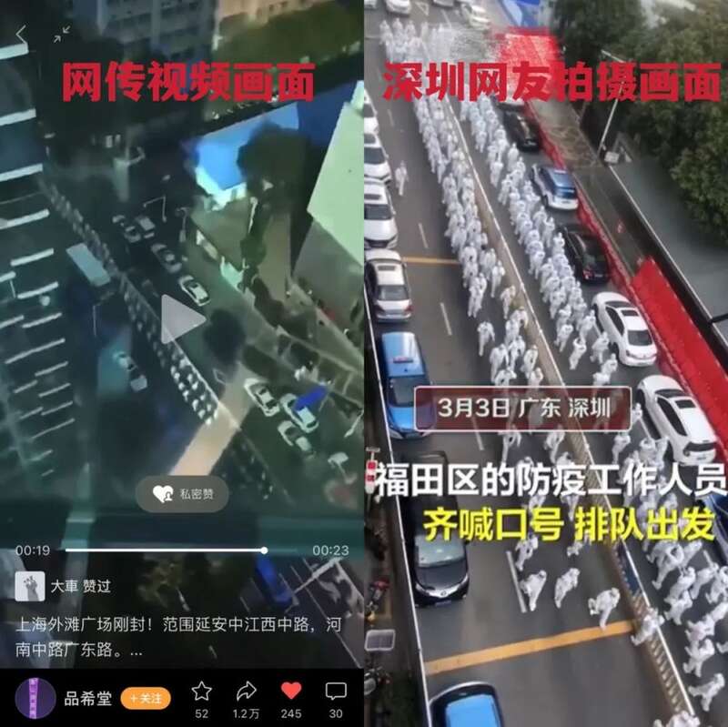 进一步核查发现,该视频极可能是好事者移花接木使用深圳地区视频所炮制的假视频,不仅内容完全与上海无关,而且篡改了原视频的本来主题。