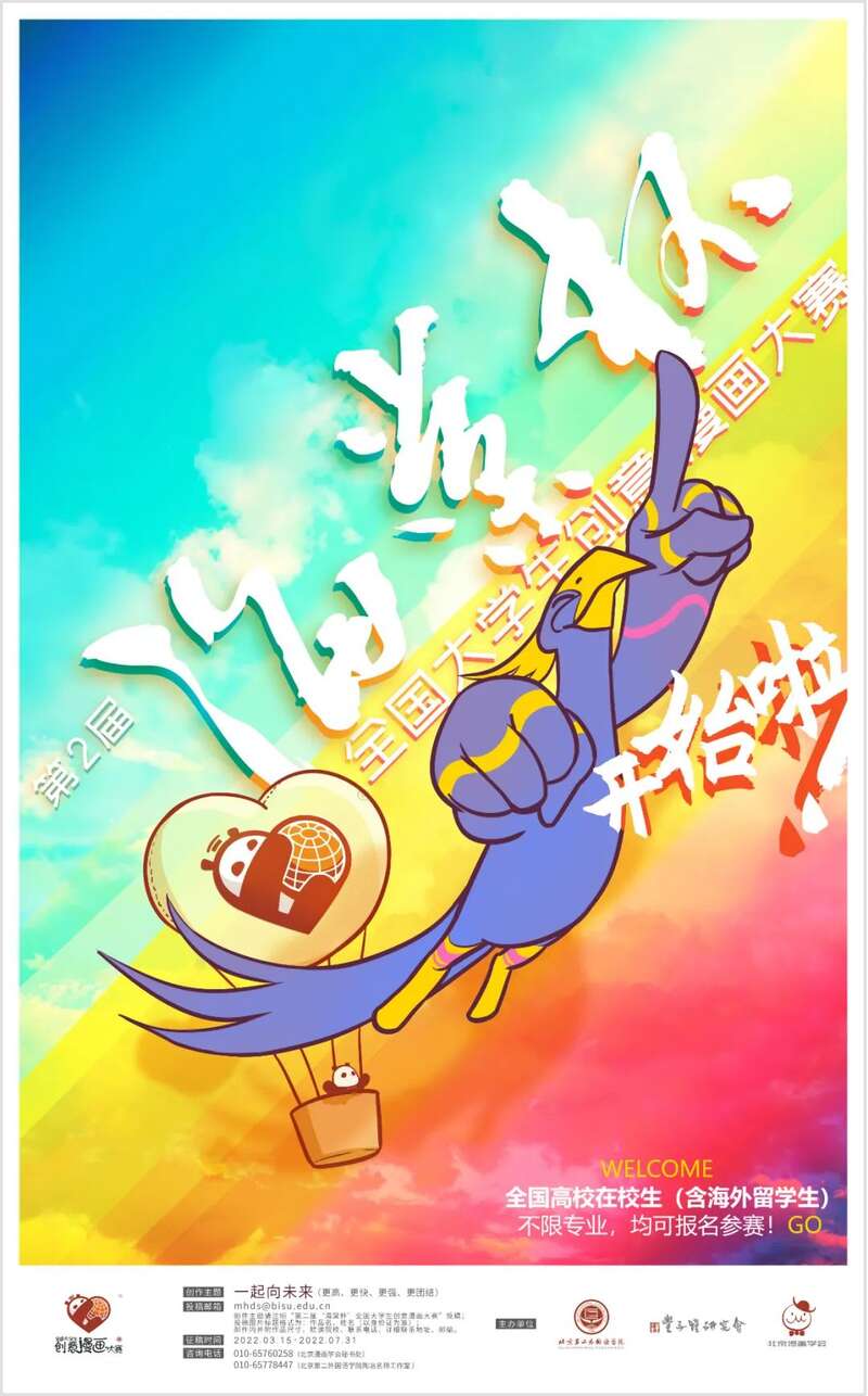 值此2022北京冬奥会圆满举办、党的第二个一百年开局之际,第二届“海棠杯”全国大学生创意漫画大赛即将拉开帷幕。本次大赛践行“更高、更快、更强、更团结”的奥林匹克精神,以北京冬奥会“一起向未来”的号召为主题,由北京第二外国语学院、丰子恺研究会、北京漫画学会联合主办,全国大学生创意漫画大赛组委会承办,并得到《中国青年报》、《神州学人》、《人民中国》等媒体的特别支持。鼓励青年大学生通过漫画这一新载体、新形式,展望未来、凝心聚力,传播中国文化,讲述中国故事。