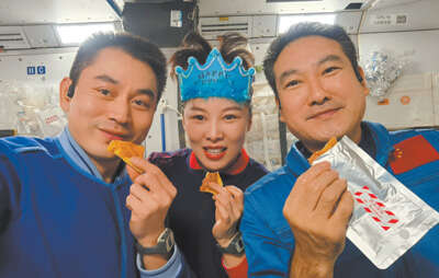 执行迄今时间最长一次太空飞行,神舟十三号航天员赶上了第一次在太空跨年,第一次在空间站过春节。在地面团队的精心保障下,航天员们除夕夜为人们送上来自太空的新年祝福,在空间站度过了年味十足、充实精彩的虎年春节。从太空出舱、“天宫课堂”开讲,到手控遥操作完成货运飞船与空间站组合体交会对接试验,从中国女航天员首次太空漫步,到3名航天员太空飞行累计超100天,太空“出差”期间,航天员们开展了一系列空间科学实验和技术试验,刷新了一个又一个中国航天纪录,为中国空间站正式建成打下坚实基础。