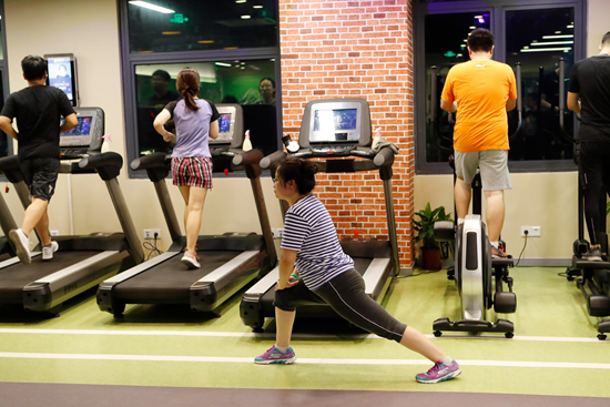 但对于深夜健身者而言,睡眠要让位于更重要的东西。一位女性学员总是在22时来上私教课,她工作繁忙,经常出差,家中还有身体不好的丈夫和孩子要照料。但一踏入健身房,她依然精神抖擞。23时下课后,她还要在跑步机上跑半个小时。“为了减肥,她好像什么都能做到。”她的教练说。