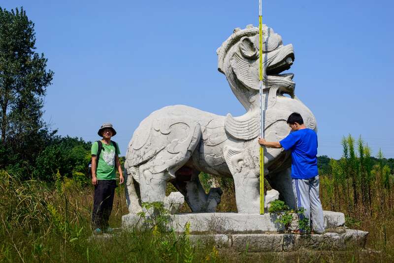 2014年,华古成员在测量南朝陵墓石刻