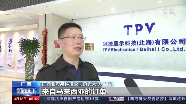 在广西北海,这家生产液晶显示器的企业负责人告诉记者,随着RCEP对马来西亚实施生效,他们每年销往马来西亚的彩色液晶显示器预计将享受百万元的关税减免。
