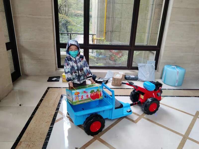 图为小尤尼搬快递,唐培仪供图