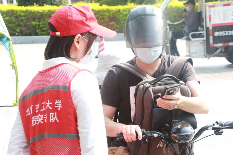 华南理工大学志愿者把好校园“入口关”。华南理工大学供图