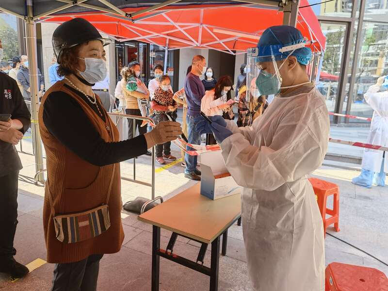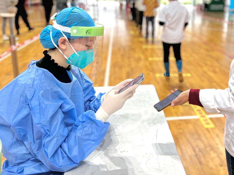 “绑管员”指核酸检测小程序的绑定管理员,主要负责给“队长”发管,以及将每一组人员的信息扫描录入到小程序里。每扫完一人,他们就要报出扫码人的姓名进行核对。詹明辉说,虽说这个事儿不难,但是对专注力和耐力要求很高。