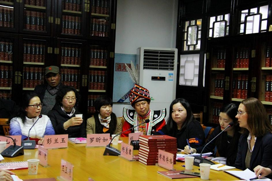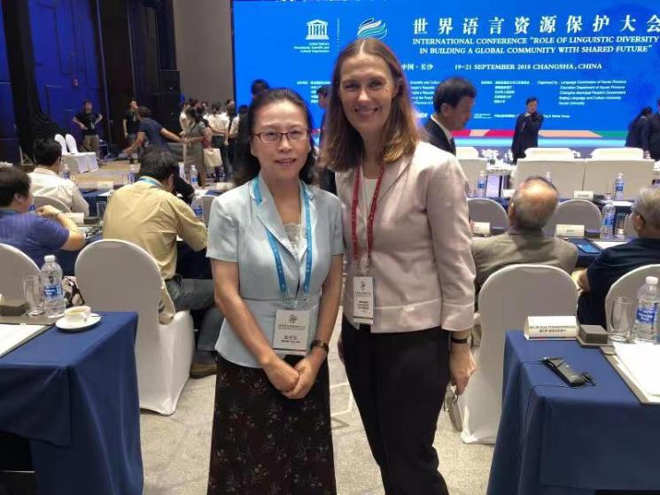 联合国世界语言资源保护项目官员来湖南大学考察(左一为彭兰玉)。