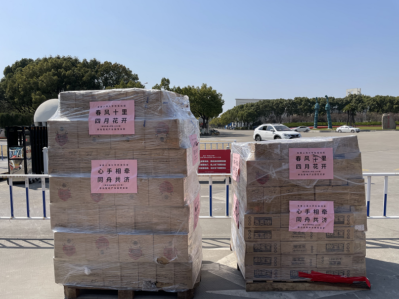 截至3月9日下午,上海大学教育发展基金会,上海大学校友会先后收到上海聚治新材料科技有限公司、移动智地产业园区党支部、中国银行宝山分行、净典环保科技(上海)有限公司、上海恳达文化传媒有限公司、中国农业银行闸北支行、上海工惠文化传媒有限公司、上海冈州陈皮村科技发展有限公司等单位,以及97级精密机械系等班级,忻诚中、李文轩、李法治等校友,周璘、余浩然等教师个人捐赠的防疫物资、方便食品及水果,在校园防疫关键时刻积极驰援母校防疫一线,为师生提供物资补给和生活保障。