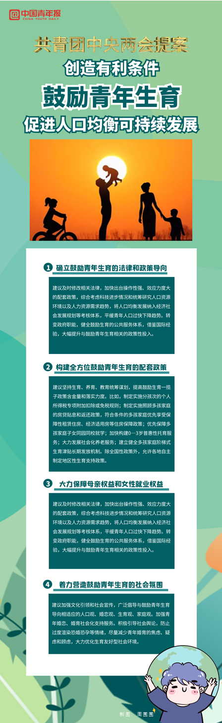 据悉,共青团中央结合2022年“共青团与人大代表、政协委员”面对面集中活动成果,就“完善鼓励青年生育配套支持政策”向全国政协十三届五次会议提交了团体提案,为解决青年生育后顾之忧积极开展政策倡导和社会倡导。