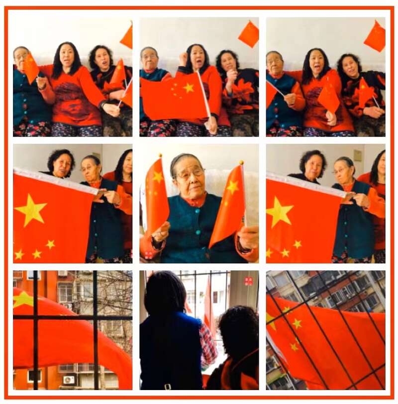 93岁的老妈瞅着一堆东西,姐姐妹妹忙来忙去的,一劲儿问这是咋回事儿?我说了一下,老人家明白了,很有感触地说:“赶上好时候了!国家好领导好,共产党好!”这时外甥冯杰发来微信,他因为扭了腰不能去当志愿者,一大早儿就把国旗挂了出去。他说:“本想帮忙抗疫,无奈腰伤未愈,只能居家隔离,挂出五星红旗,鼓我大唐士气,相信国家,相信党,疫情终将过去,还我大好天地!”姐姐说:“这事儿做得好!咱们也赶紧挂,在家里的群里说一下,这一刻挂国旗非常有意义!”