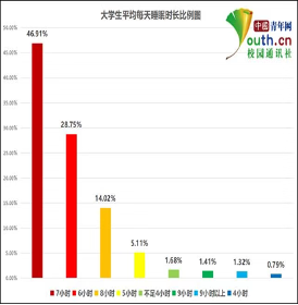 据中国青年网校园通讯社2019年的问卷调查,超三成大学生零点之后睡觉且睡眠不足7小时,半数大学生对睡眠质量不满意;八成大学生有过失眠状况。