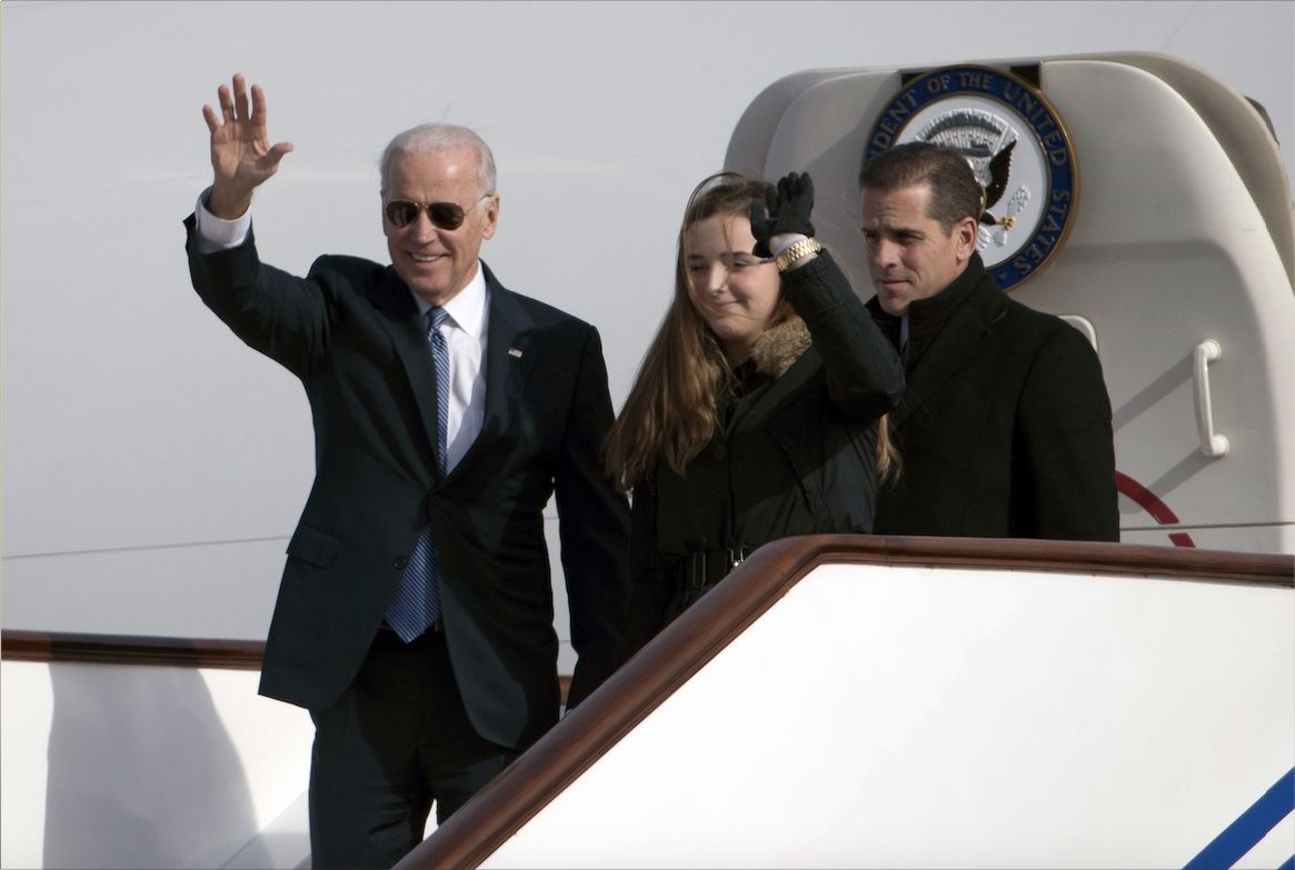 2013年12月4日,北京,时任美国副总统的拜登在儿子亨特(右一)及孙女的陪同下访问中国。图片来源 视觉中国