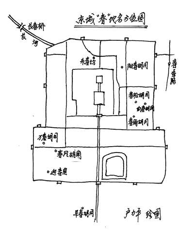 阳春胡同位于东城区北河沿大街东侧,呈南北东西直角状,北起地安门东大街,西止东黄城根北街,曾称小苏州胡同。该胡同南面的大取灯胡同,清代有諴亲王府,即康熙帝最小儿子胤祕府第,后降为贝勒府,到了同治年间降为贝子府,由于此建筑规格“超标”,故将规模缩小,将北部房屋拆除,划归出去,渐成居民区,并形成小巷。据传有来自苏州的工匠居住于此,故称“小苏州胡同”。因长安街北侧南池子也有一个小苏州胡同,为了避免重名,将其改为“阳春胡同”。“阳春”即温暖的春天,引申为太平盛世,典自唐朝诗人李白《梁甫吟》:“长啸梁甫吟,何时见阳春。”