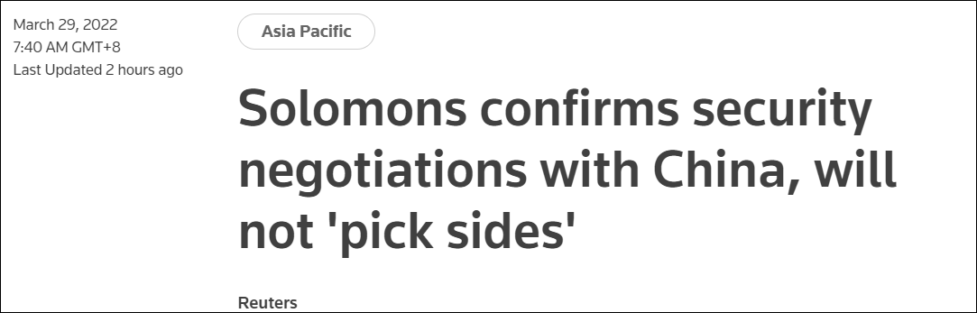 上周,所罗门群岛政府警务部门一名高级官员证实,所罗门群岛已经与中国签署了一项警务协议,还将向内阁提供一份更广泛的安全协议提案。路透社称,如果这项安全协议达成,将是中国在南太平洋地区的一个“重大突破”。数十年以来,澳大利亚和新西兰一直将该地区视为是它们的“后花园”(back yard)。