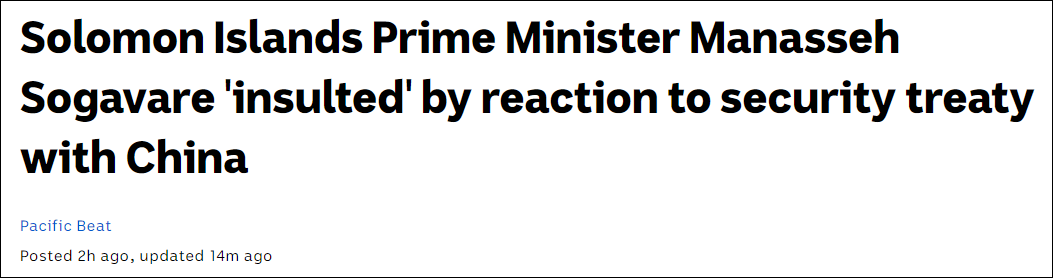 索加瓦雷还表示,他认为,所罗门群岛“被贴上不适合管理本国主权事务的标签,或者被说在追求国家利益时有其他动机,非常具有侮辱(very insulting)”。
