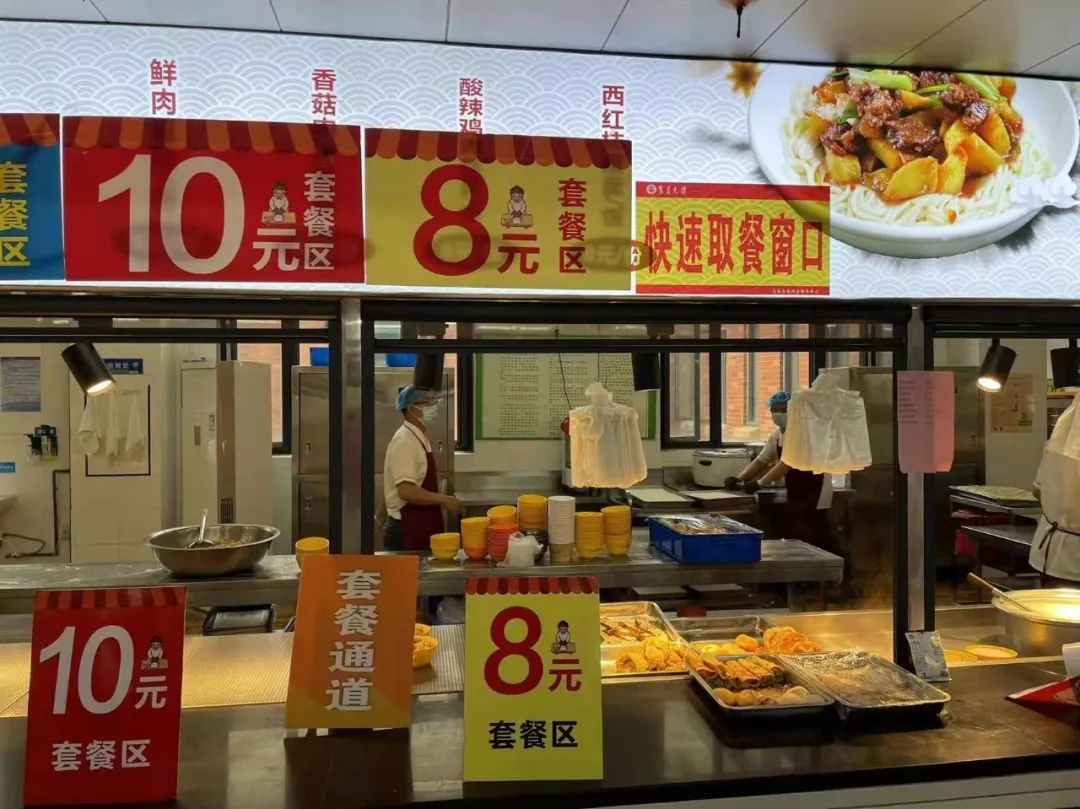 此次疫情发生以来,全校食堂延长供餐时间,各食堂增加快速取餐窗口,取餐窗口提供固定套餐,及时分散人流。此外,为了方便师生,校本部及诚毅校区还可通过“集大饮食”公众号,进入订餐平台,下单点餐配送,分散用餐。