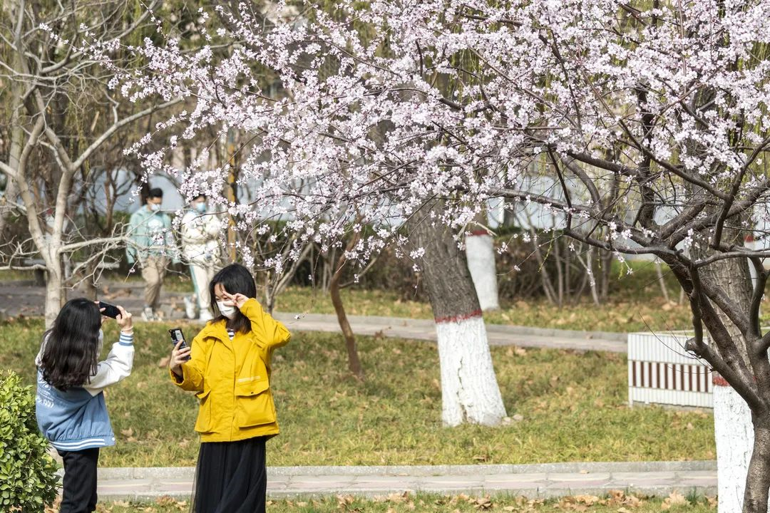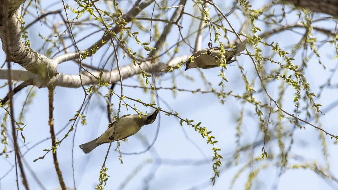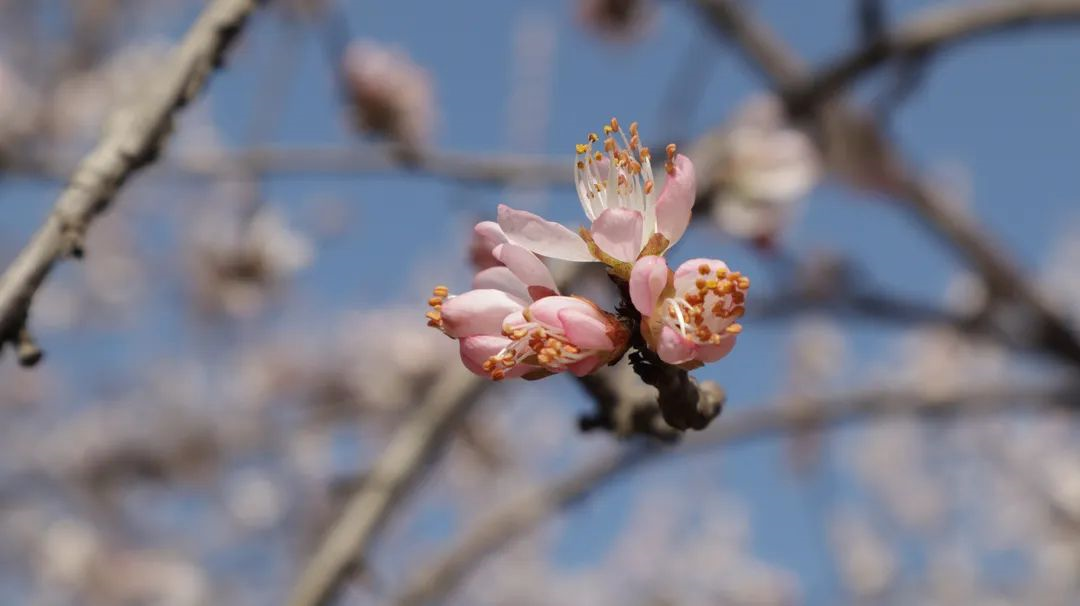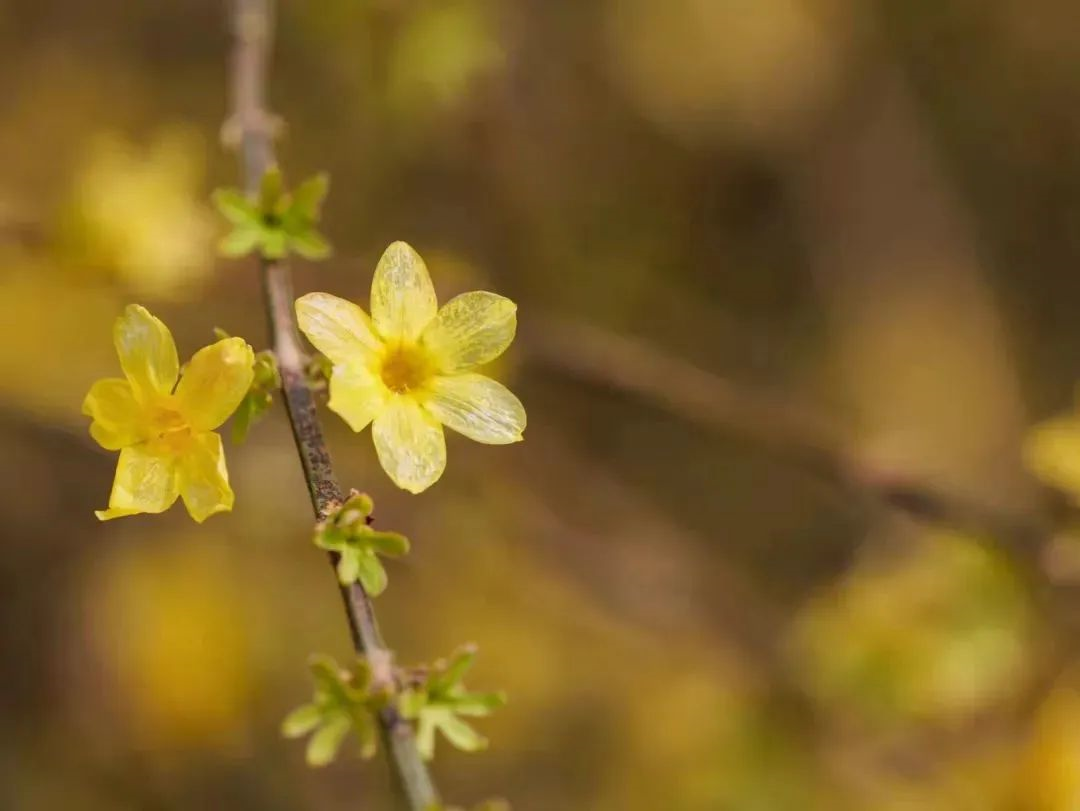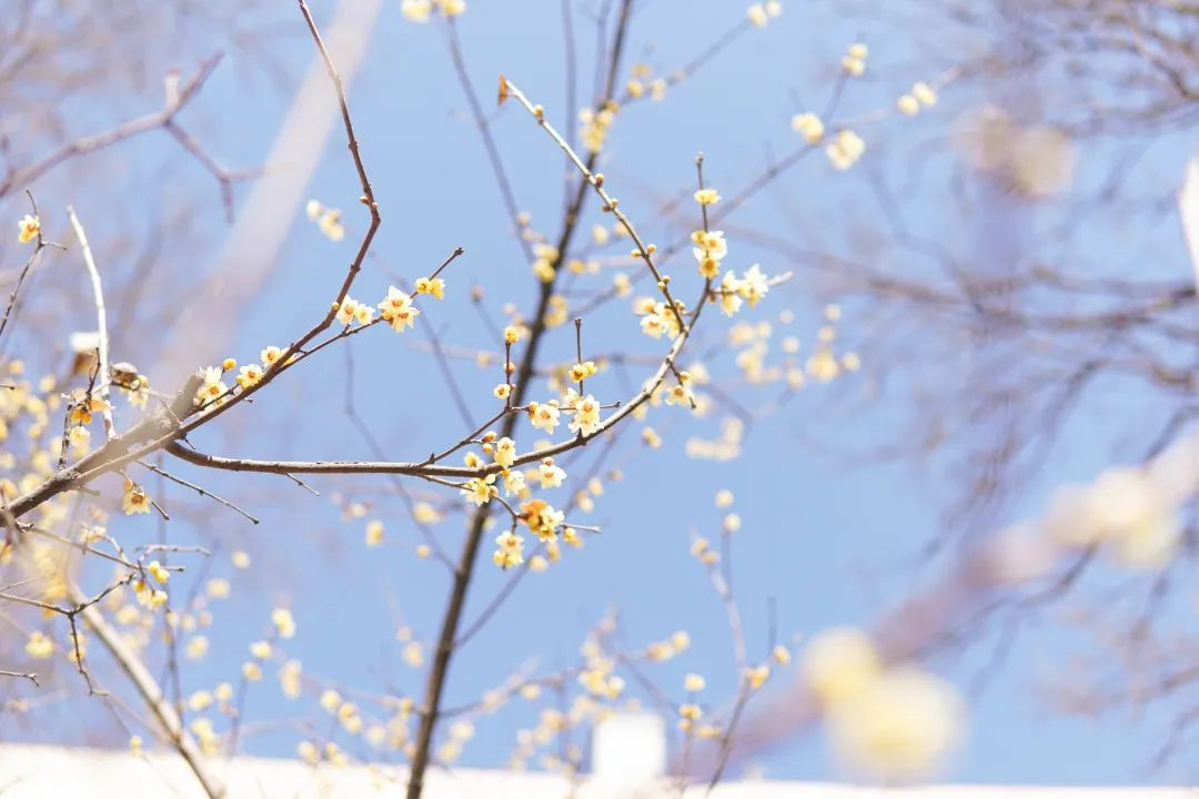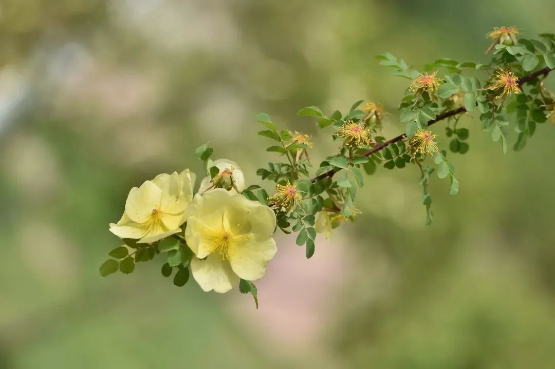 看黄蕊浅瓣挂枝 缀点晴蓝
