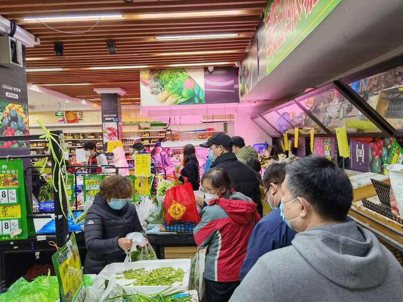 一些上海市民赶在封控前去超市买菜。(新华社记者 吴振东 摄)