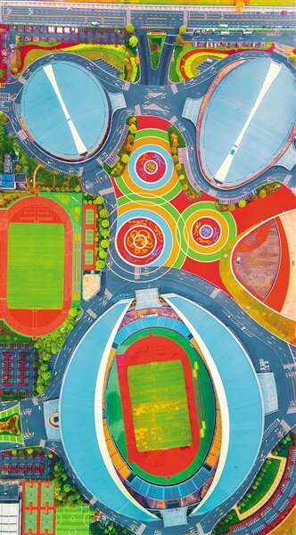 各竞赛场馆在设计上别出心裁、独具匠心,建设中巧夺天工、精益求精,成为了各城市的地标性建筑。位于钱塘江畔的杭州奥体中心体育场,外表由28片大花瓣和27片小花瓣组成,酷似一朵绽放的莲花。与它遥相呼应的是一双张开的银白色金属翅膀——杭州奥体中心游泳馆,这里作为世界上最大的两馆连接体非线性造型场馆,无论在白天夜晚都有着一流的颜值。而绍兴柯桥羊山攀岩中心场馆造型犹如一枚被部分镂空的“蚕茧”,造型精巧别致,让人过目不忘……
