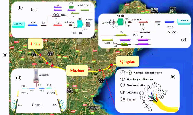济南量子技术研究院与中国科学技术大学合作,基于齐鲁干线成功实现500公里量级无中继光纤量子密钥分发