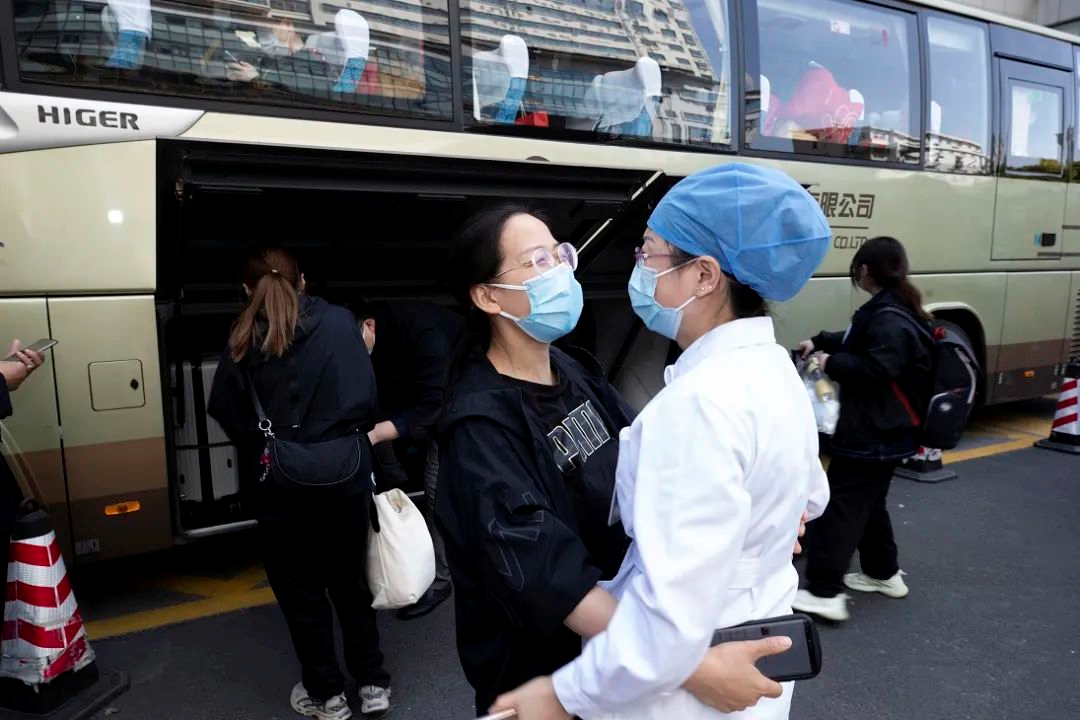 3月29日上午,由468名医务人员组成的附属第十人民医院医疗队集结出发,奔赴新国际博览中心临时集中隔离救治点工作。这支由85名医生、366名护士以及17名管理人员组成的医疗队,之后将主要负责收治本市轻症和无症状感染者。