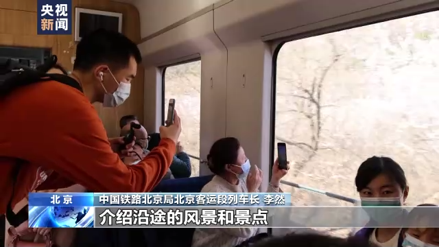 中国铁路北京局北京客运段列车长 李然:乘务员会在列车到达景点之前向旅客介绍观看景点的方向,咱们的广播也会向大家介绍沿途的风景和景点。