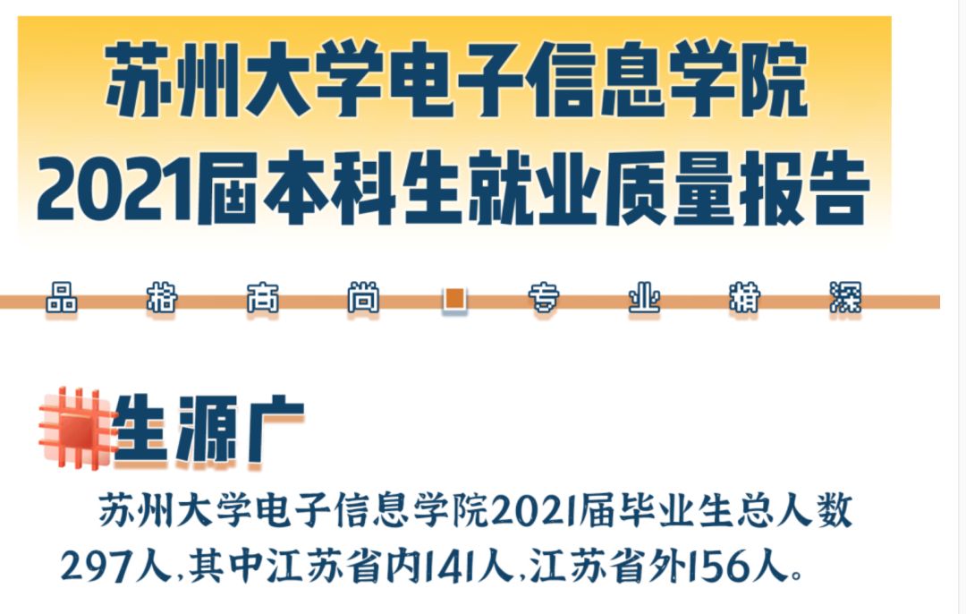 2021年12月,苏州大学电子信息学院发布了《2021届本科生就业质量报告》,每年这个时候,学院都会出台这样一份报告,这既是对当年学生毕业情况的汇总,也成为在校学生能及时获取就业市场“晴雨表”。