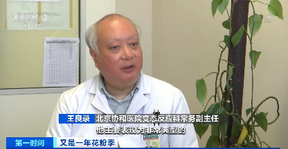 北京协和医院变态反应科常务副主任 王良录:主要表现为非常典型的、季节性的鼻结膜炎,包括流鼻涕、打喷嚏、鼻子痒、鼻子堵、眼睛痒、耳朵痒、上颚痒甚至嗓子痒,大概有5%的病人可以出现咳嗽甚至喘憋。