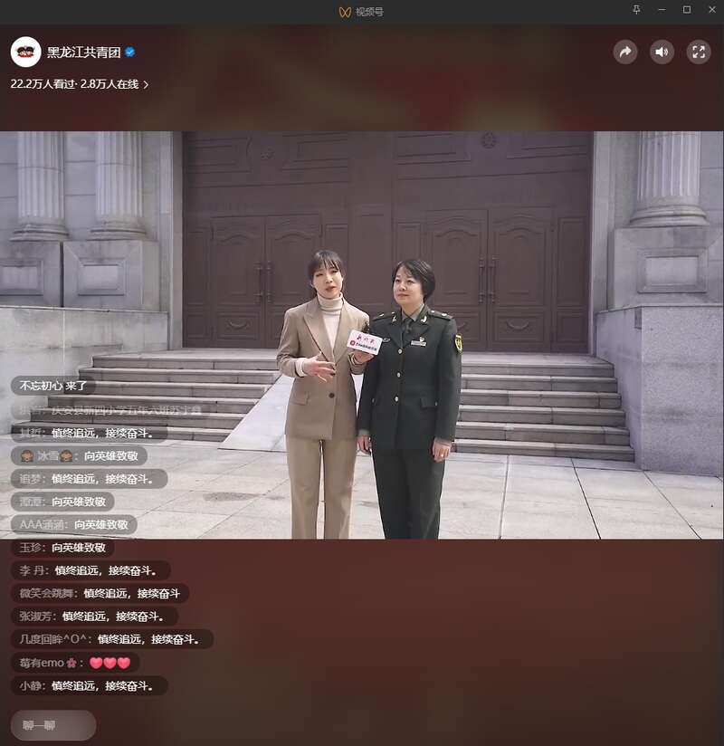 团黑龙江省委联合哈尔滨烈士陵园以“弘扬英烈精神 赓续精神血脉”为主题讲授线上云团课,讲解员带领青少年以“云视角”形式走进烈士陵园,参加升旗仪式,聆听英烈故事,回忆峥嵘岁月。同时参与开展“今天,为英烈献花”慢直播活动。截至中午12时,多平台收听收看人次超60万,留言点赞量超550万。