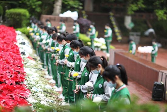 4月4日,在贵州省赤水市红军烈士陵园,赤水一中师生祭奠红军烈士。新华社发(杨洋摄)