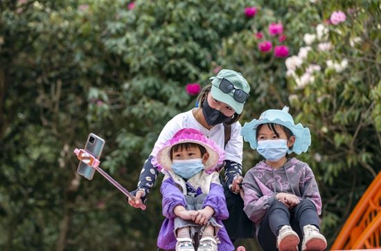 4月4日,游客在贵州省毕节市百里杜鹃金坡景区赏花拍照。新华社发(范晖摄)