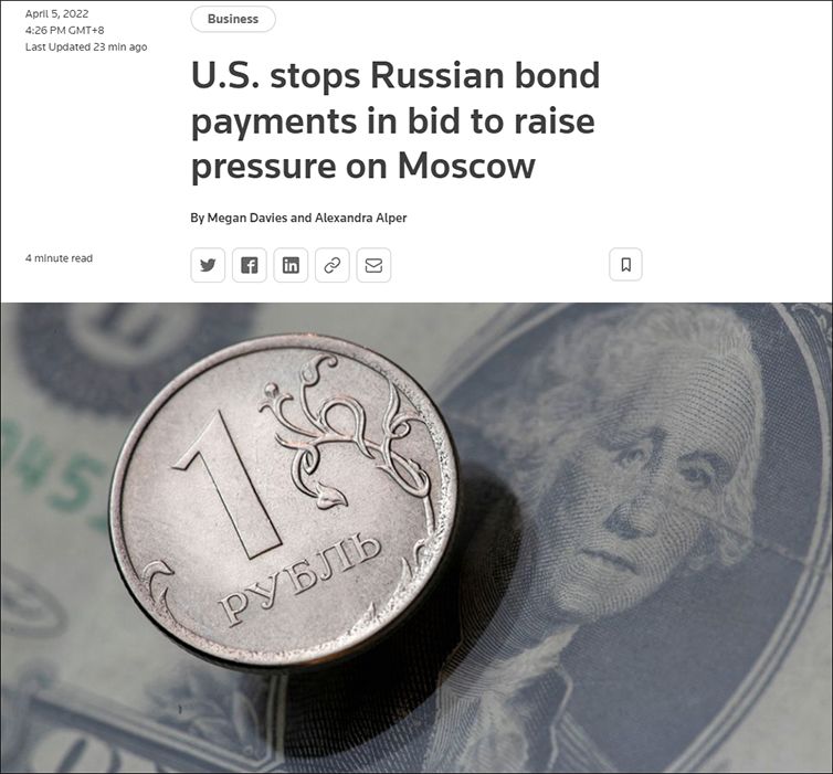 美国财政部发言人称俄罗斯恐将面临“历史性的违约”,而路透社的报道也分析了对于俄罗斯可能违约的担忧。
