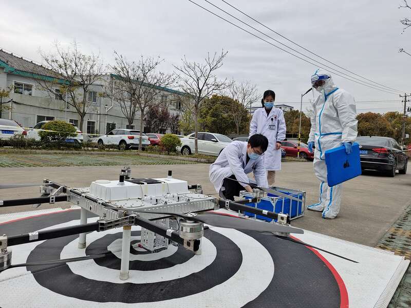 中国青年报客户端上海4月6日电(公维同 中青报·中青网记者王烨捷)4月5日下午,1200份抗原检测试剂盒在短短十几分钟之内就完成了从华东无人机基地到上海金山区某隔离医学观察点的快速无接触配送任务。