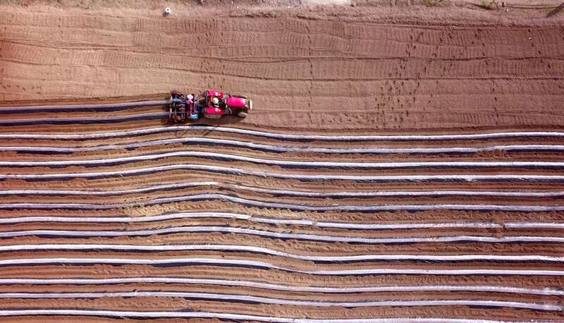 ↑在江苏省连云港市朝阳街道韩李村,农民在田间劳作(4月4日摄)。新华社发(王春 摄)