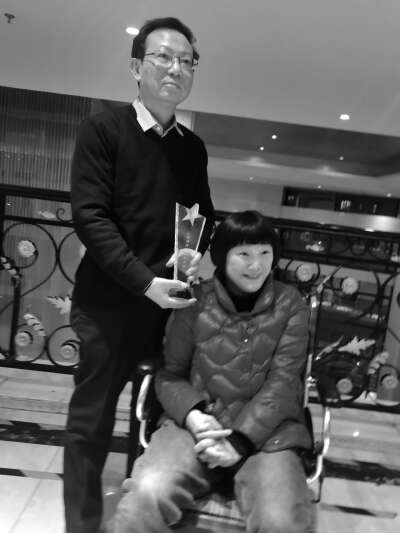 ▲ 王忆荣获北京冬残奥会残健融合原创主题歌曲优胜奖。左边是她的父亲。